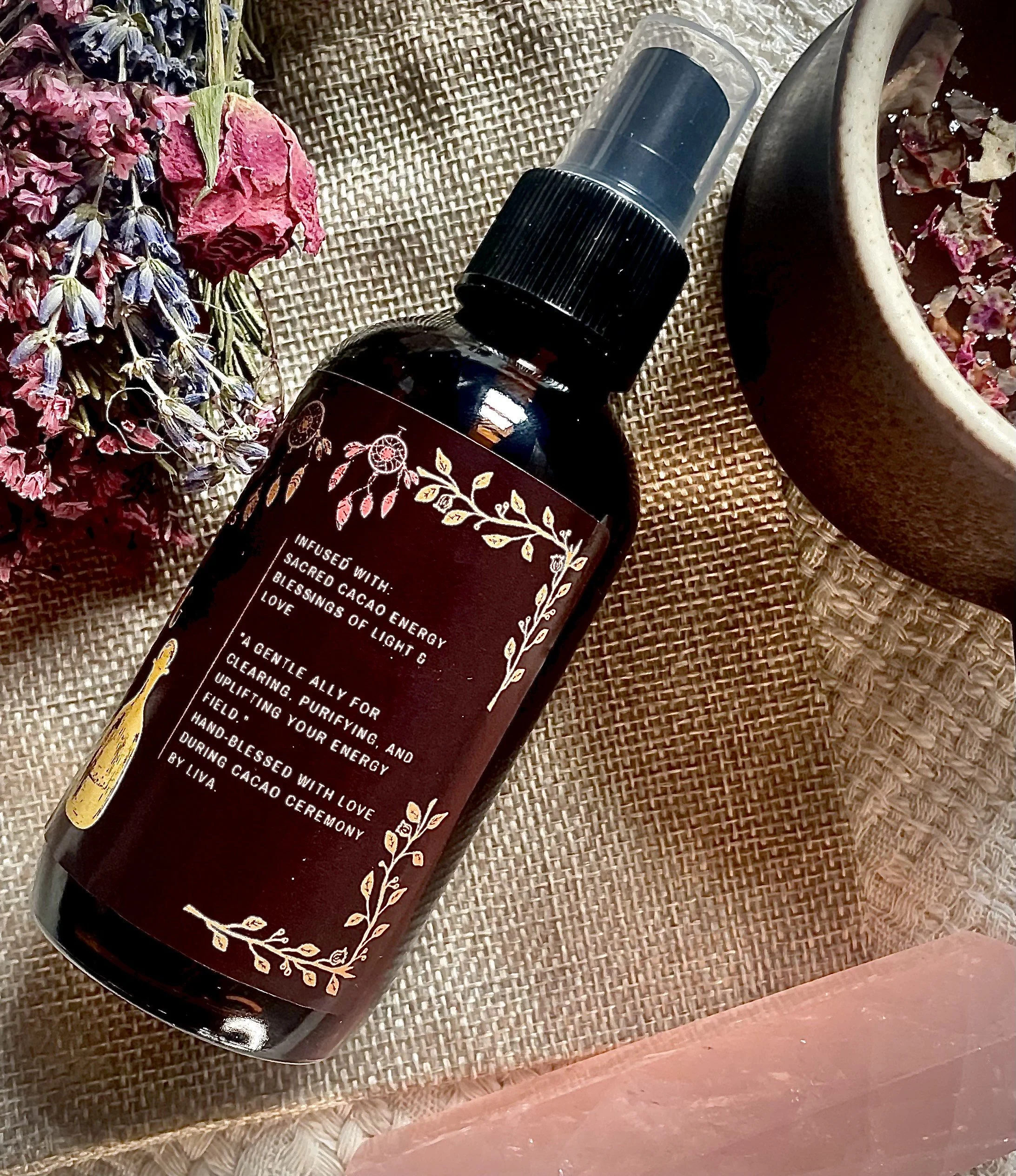 Before each Sacred Cacao Ceremony and Energy Transmission, I begin with a simple yet powerful ritual: cleansing the aura with shamanic water gifted to me from the sacred lands of Costa Rica.